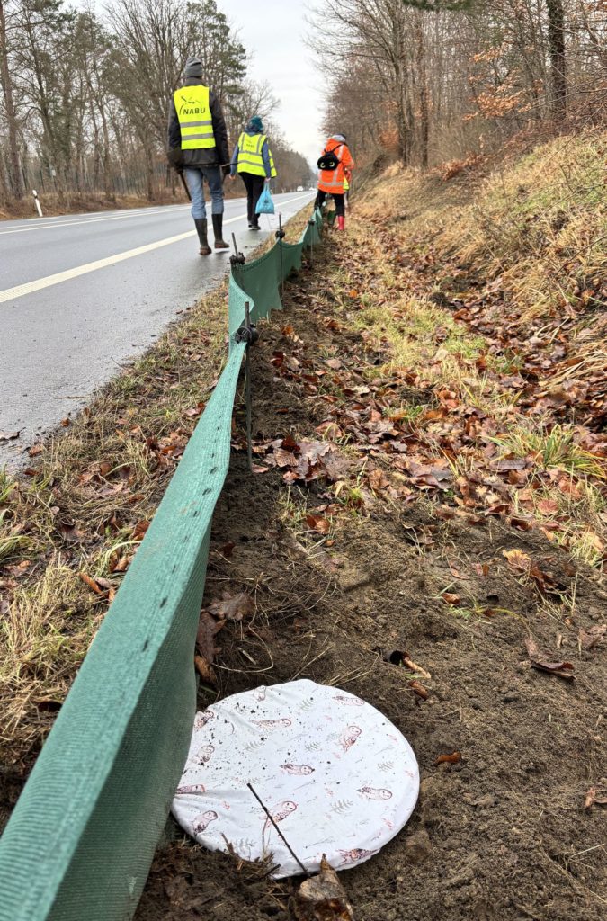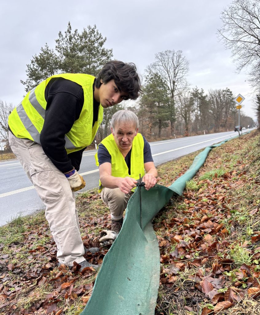 Fotos: NABU/Tino Westphal – Aufbau des Amphibienzauns an der B3