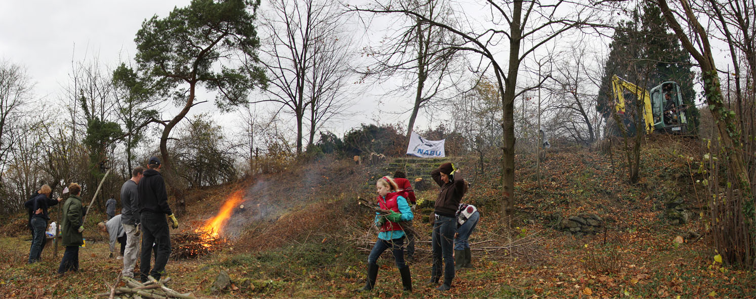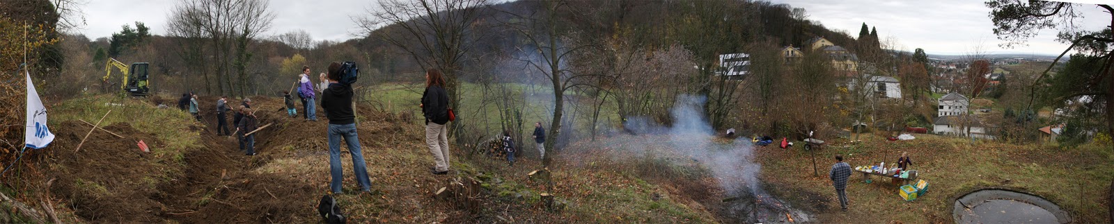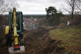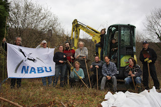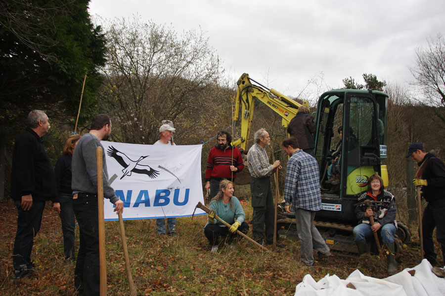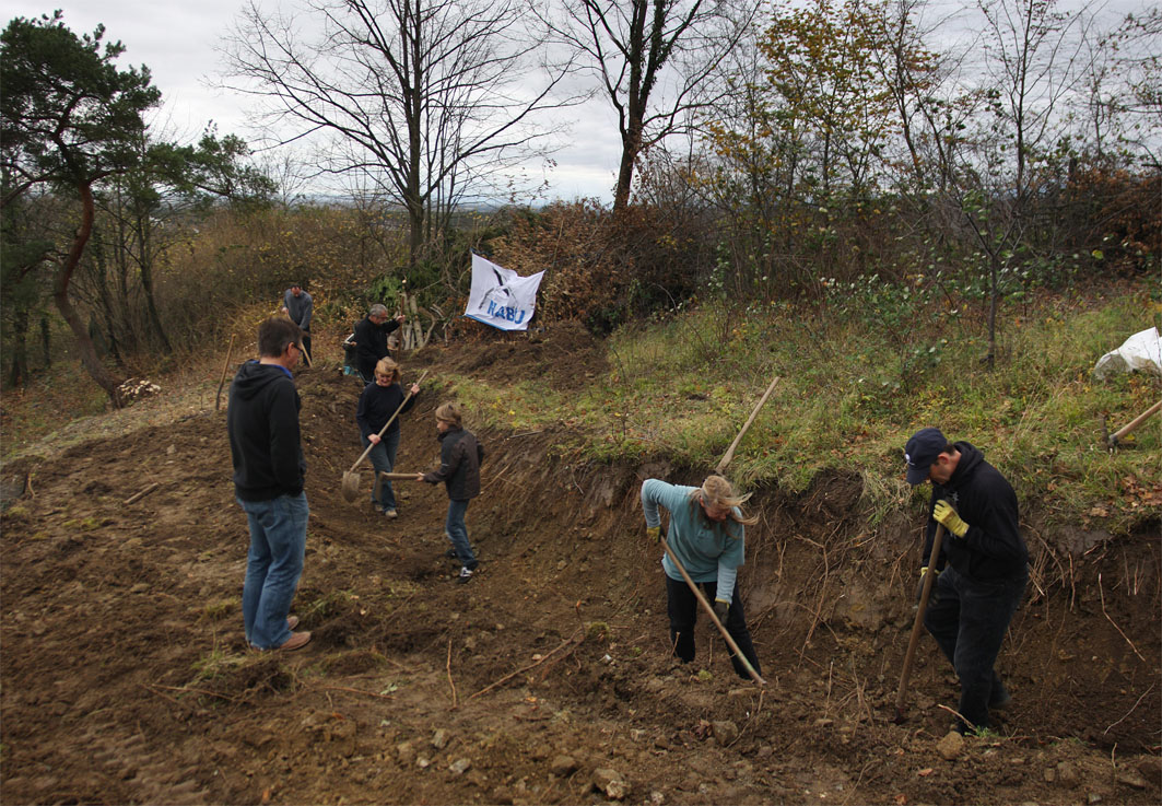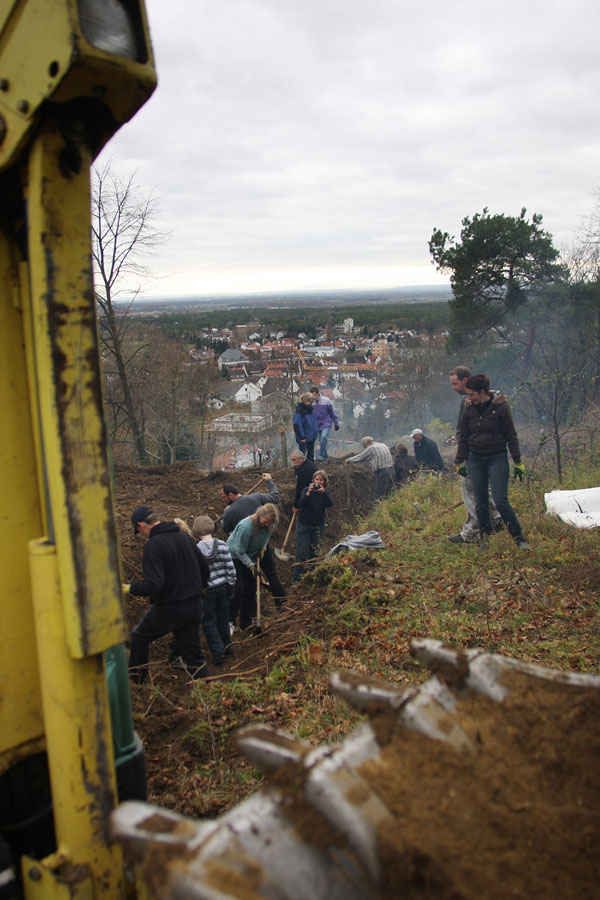 Das NABU Team und viele Gäste baggerten einen Graben für eine Steinschüttung. Auf dem NABU Gelände am Blütenhang bei Seeheim wird eine neue Heimstatt für die Schlingnatter entstehen.