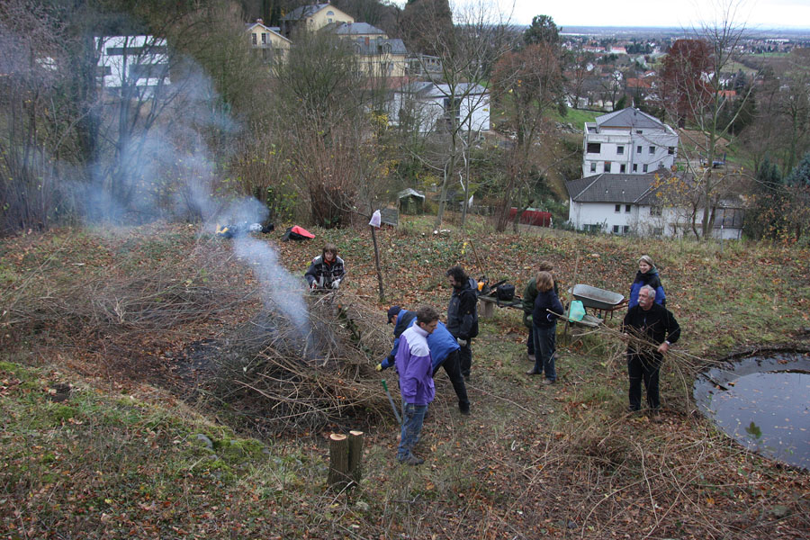 Natürlich wurden die vorhandenen Reisighaufen vor dem Verbrennen umgesetzt, um Kleintiere zu schonen.