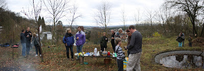 Nach zwei Tagen Regen und Sturm wollte das Feuer nicht so recht angehen- Pfadfinderqualitäten waren gefragt. Gut das die Feuerwehr wegen des geplanten Feuers informiert war.