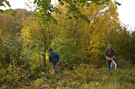 Einmal jährlich werden neue Abschnitte der vorhandenen Trockenmauern freigelegt und Haselsträucher auf den Stock gesetzt.