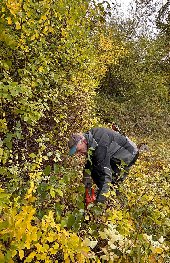 Nicht in jedem Jahr, aber alle paar Jahre schneiden wir auch abschnittsweise das Buschwerk auf den Terrassen zurück, damit die Wiesen viel Sonne abbekommen. Dieses Jahr ist es wieder soweit, sodass bald ein weiterer Einsatz am Weinberg stattfinden wird. Dabei werden nicht nur Büsche auf den Stock gesetzt, sondern auch der Bewuchs auf den Außenmauern zurückgeschnitten.