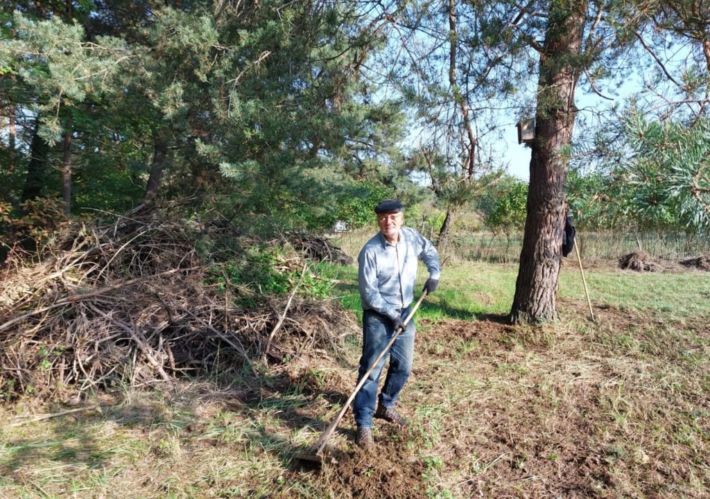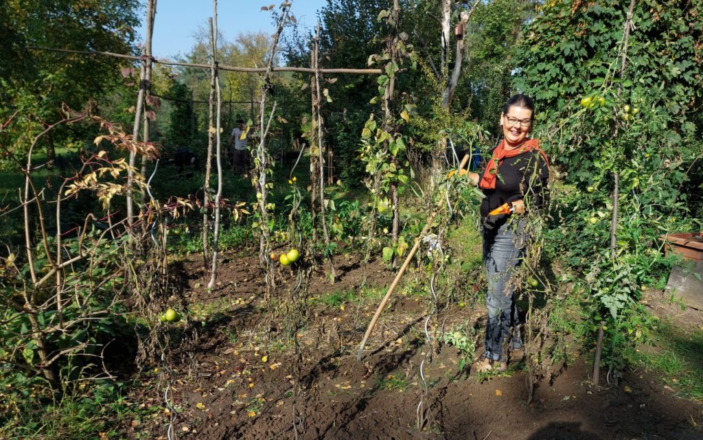 Ruth und Klaus befreiten im Eingangsbereich den Wildstauden-Wall von Brennesseln, Gräsern etc. und auch die Gemüsebeete wurden flink gejätet und gehackt.