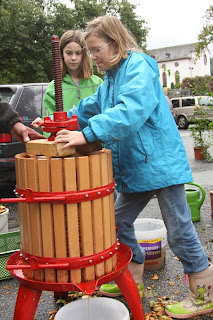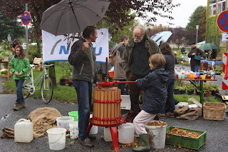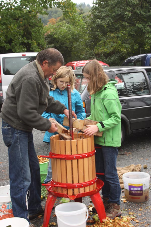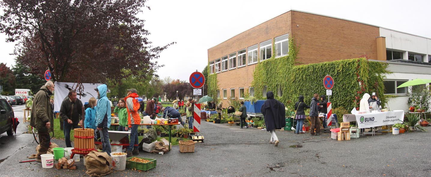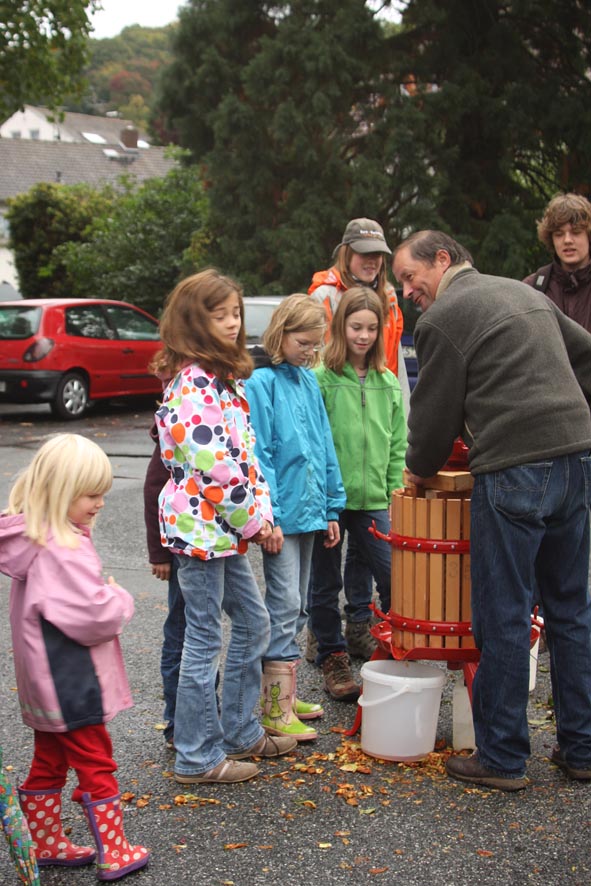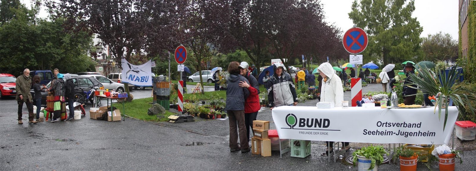 Die Kinder- und Jugendgruppe des NABU „Die Wühlmäuse“ präsentiert sich beim Pflanzenflohmarkt in Seeheim. Frisch gepresster Apfelsaft wird angeboten und auch der berühmte „Wühlmaus-Honig“ der Jung-Imker der Gruppe.