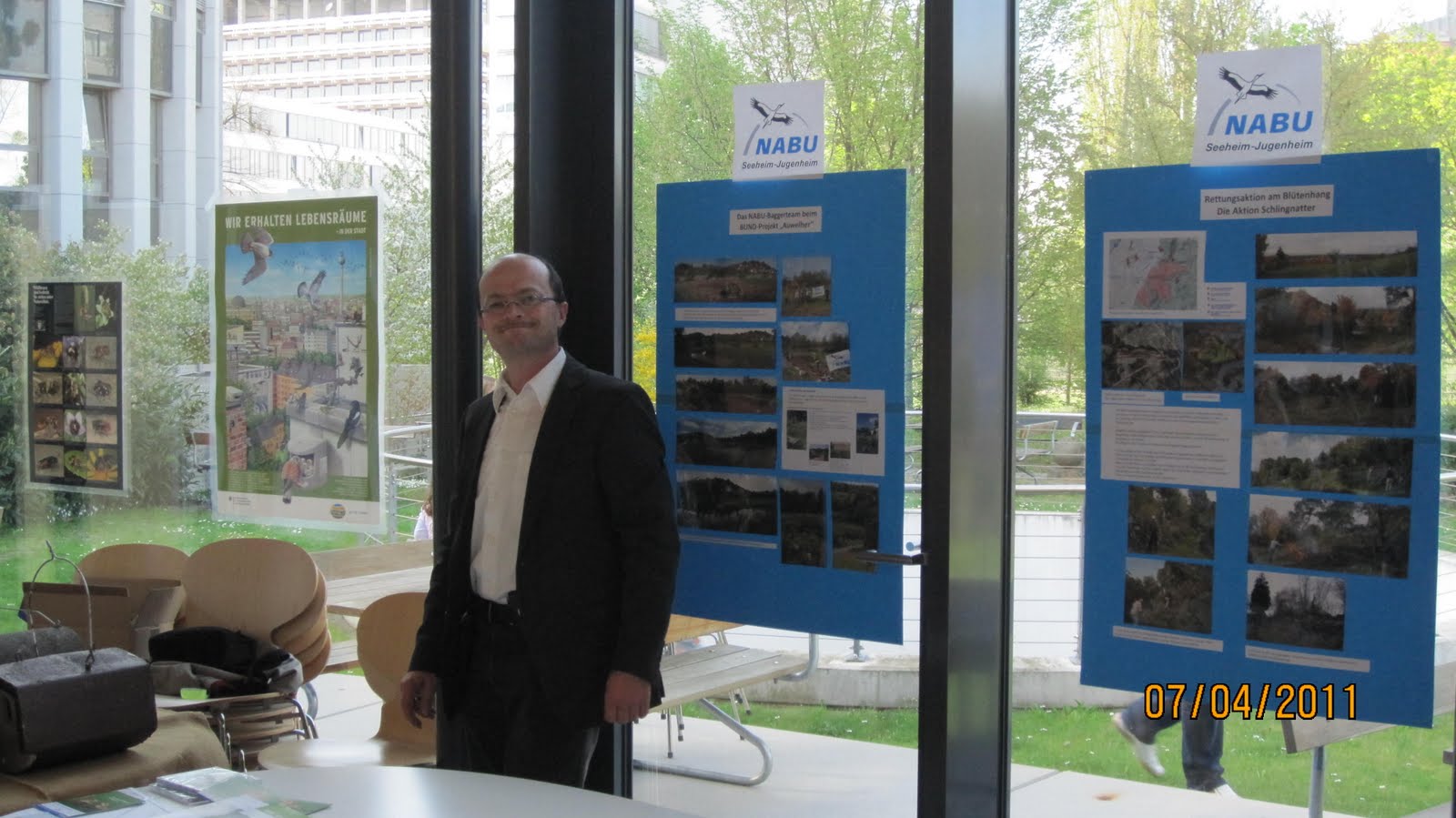 Zusammen mit den Kollegen der NABU Ortsgruppe Darmstadt und vom BUND Seeheim-Jugenheim waren die Naturschutzverbände gut vertreten. In angenehmer Atmosphäre im Wintergarten des EUMETSAT Gebäudes wurden dem sehr interessierten Publikum am NABU-Stand auch Bilder des ersten gemeinsamen Arbeitseinsatzes zur Rettung der Schlingnatter in Seeheim mit The Better World Club gezeigt.