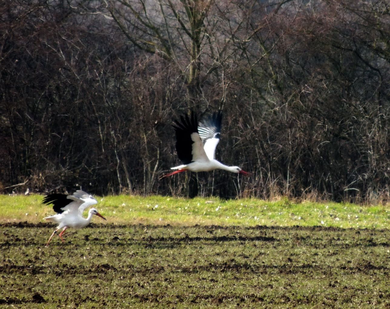Am 6. März war erstmals in diesem Jahr das Bickenbacher Storchenpaar in der Landbachaue zu beobachten. Zwar konnte der Ring des Weibchens wegen der zu großen Entfernung (noch) nicht abgelesen werden, aber durch Fotovergleich steht zweifelsfrei fest: es sind die zurückgekehrten Bickenbacher!
