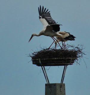 Ihre Freischichten verbringen die Stöche jeweils mit der Nahrungssuche. Das Weibchen ist auch mal bei einem ausgiebigen Bad in den naheliegenden Wasserflächen der Aue zu beobachten, während das Männchen in seiner Freizeit gerne zu einem Höhenflug in der Thermik startet. Eventuelle Parallelen zu menschlichem Verhalten sind hierzu selbstverständlich auszuschließen!