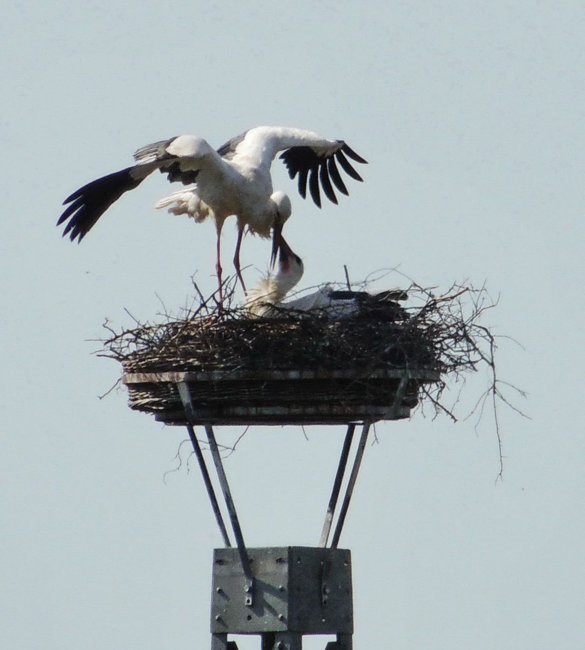 Interessant war die Beobachtung, dass sich das Storchenpaar zu Beginn des Brutgeschäfts zwei- bis dreimal in der Stunde auf dem Nest abwechselte. Dies hatte sich nach ein paar Tagen geändert und zwei Wochen nach Brutbeginn lösen sich die Störche dann frühestens nach zwei bis drei Stunden beim Brüten ab.