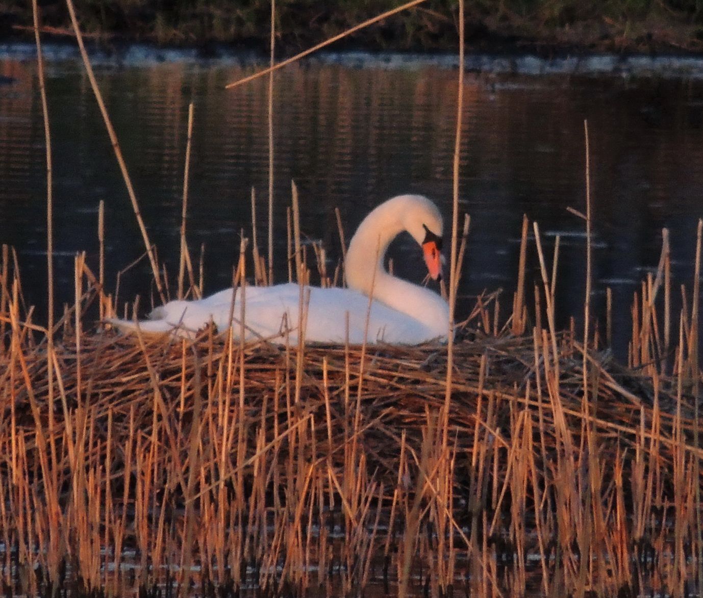 Mitte Mai ist mit dem Schlüpfen der Storchenküken zu rechnen. Etwa zeitgleich müsste sich der Nachwuchs bei den in der Nähe brütenden Höckerschwänen und einem Kanadaganspaar einstellen. Die Graugänse im Gebiet sind etwas früher dran und führen schon seit Mitte April stolz ihren Nachwuchs vor.