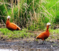 Für einige Limikolen (Watvögel) war im Mai in der Landbachaue Zwischenstopp auf ihrer Reise in die Brutgebiete. Zu beobachten waren unter anderem Waldwasserläufer, Bruchwasser- und Kampfläufer, Rot- und Grünschenkel und vereinzelt auch die scheue Bekassine (NABU-Vogel des Jahres 2013). Auch ein Paar Rostgänse, eher in Osteuropa beheimat und bei uns den Neozoen zugeordnet, schaute für ein paar Tage vorbei. Am auffälligsten war allerdings ein Säbelschnäbler, der durch seine markante schwarzweiße Färbung und seine beträchtliche Größe nicht zu übersehen war und in der Landbachaue etwas exotisch wirkte.