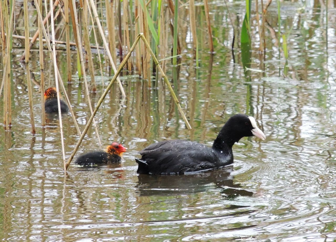 Für die Wasservögel in der Aue waren die schlechtenWetterbedingungen weniger problematisch. Grau-, Kanada- und Nilgänse segelten mit ihrem Nachwuchs über die Wasserflächen, ebenso einige Blässhuhnfamilien. Allerdings waren, wie im Vorjahr auch, wenige Stockentenfamilien zu sichten. Auch die Höckerschwäne haben ihre lange Brutzeit erfogreich abgeschlossen und führen ihre 6 Junge aus.