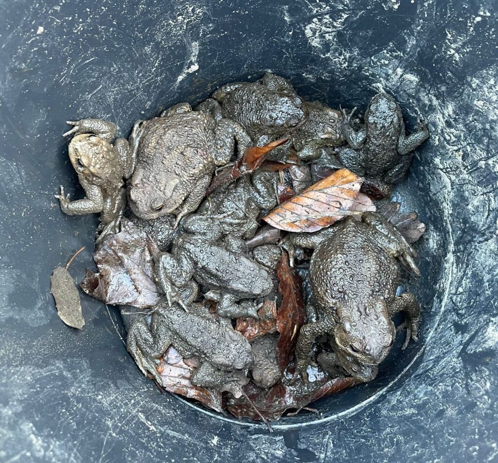 Die Aktiven der NABU-AG Amphibienschutz konnten heute die ersten 22 Erdkröten an der B3 bei Eberstadt vor dem beinahe sicheren Straßentod retten.