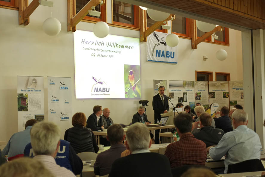 Bei den Neuwahlen des Landesvorstands wurde der Biologe Gerhard Eppler aus Heppenheim in seinem Amt bestätigt. Auch die stellvertretenden Vorsitzenden Marko Dorndorf (Eschenburg) und Stefanie Stüber (Büttelborn) sowie der Schatzmeister Klaus-Dieter Seibel (Bad Wildungen) wurden für zwei weitere Jahre wieder gewählt. Zum neuen stellvertretenden Vorsitzenden wurde Martin Runkel aus Gelnhausen bestimmt, der Lydia Desch aus Jossgrund ablöst. Nach über zehnjähriger Vorstandstätigkeit stellte sich die NABU-Aktive aus dem Main-Kinzig-Kreis nicht mehr zur Wahl. Landesvorsitzender Eppler dankte Lydia Desch für ihre langjährige Mitarbeit und zeichnete sie mit der silbernen Ehrennadel des NABU aus.