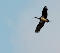 Sage und schreibe 5 Schwarzstörche (Ciconia nigra)  auf einen Schlag in einem Feuchtgebiet bei Bickenbach meldet Rudolf Boehm. Jetzt liegen uns die ersten exklusiven Aufnahmen der schönen Vögel vor: Dank an Evelyn und Willi Benz aus Bickenbach!
