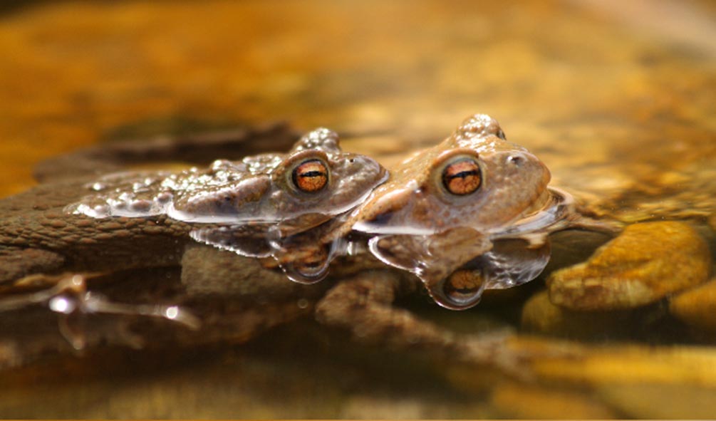 Tausende Kaulquappen der Erdkröte in ihrem Hausteich meldet Gudrun Behrend. Offensichtlich fühlen sich die Erdkröten wohl in diesem Laichgewässer. Eine schöne Ringelnatter kommt von Zeit zu Zeit vorbei und fängt sich eine Mahlzeit.