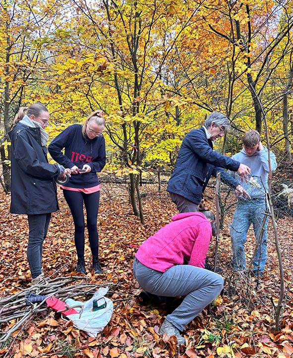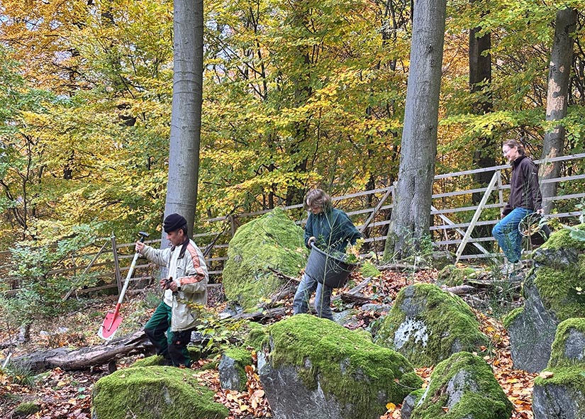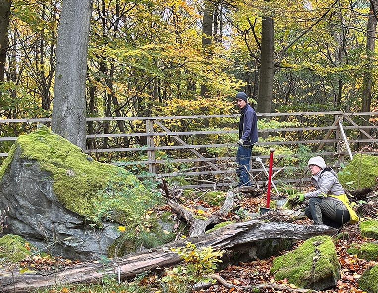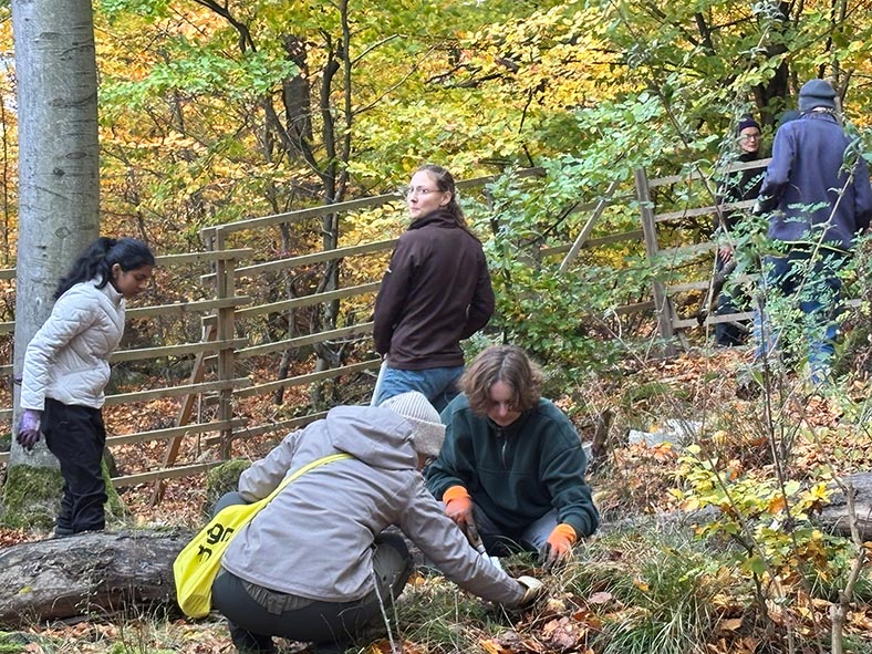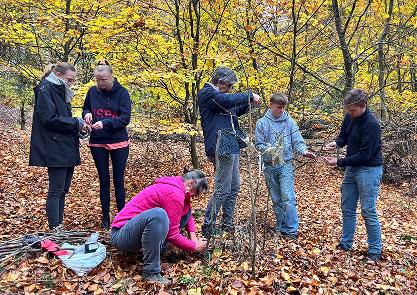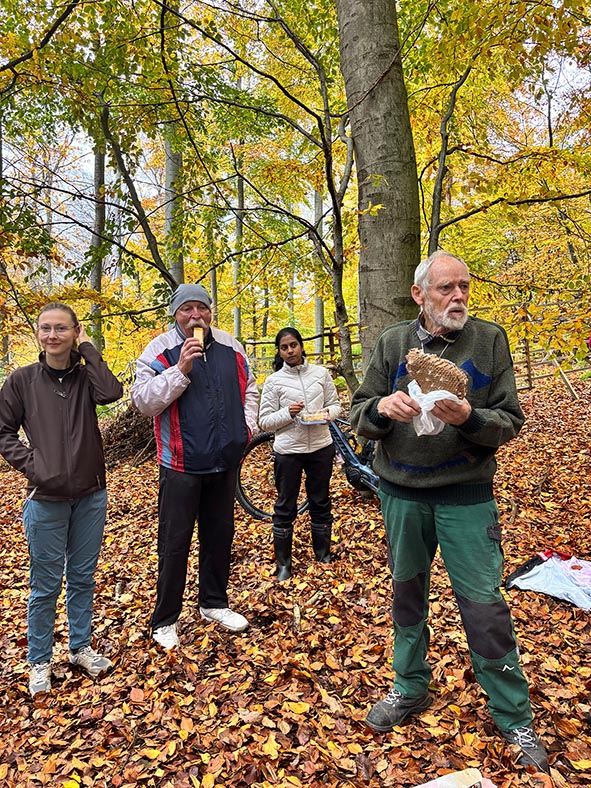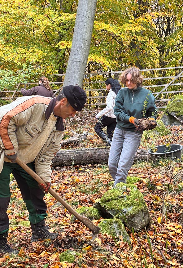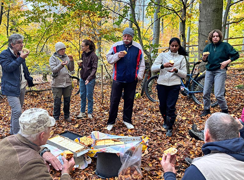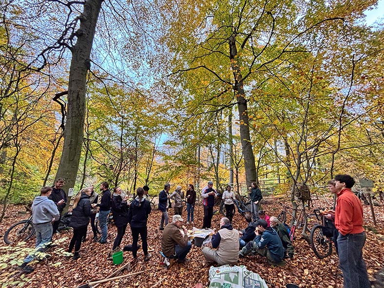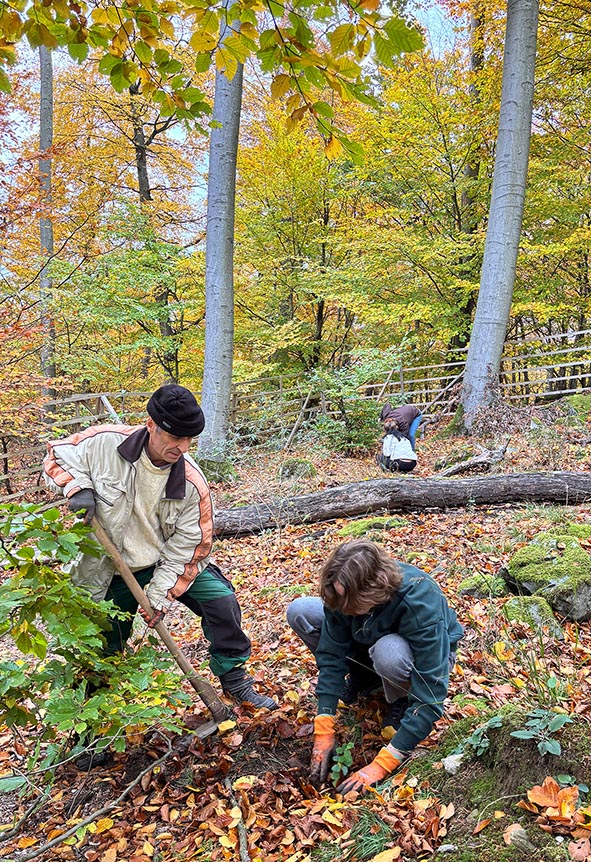 Nach einer Exkursion unter Leitung von Ecki Woite durch den Wald am Langen Berg beginnt die Arbeits-Aktion…