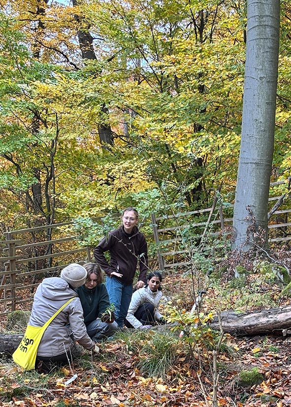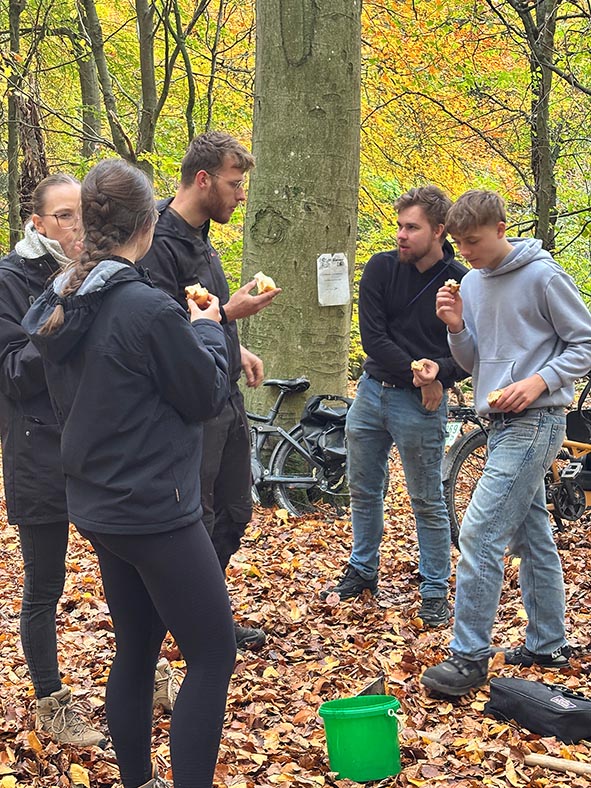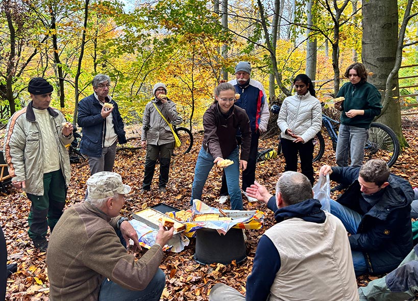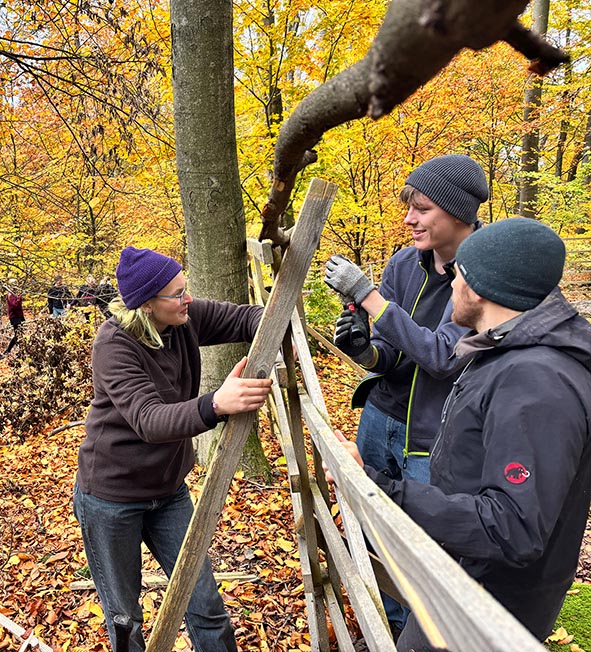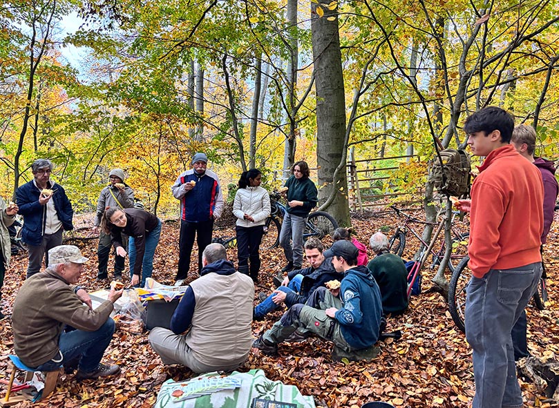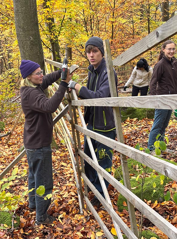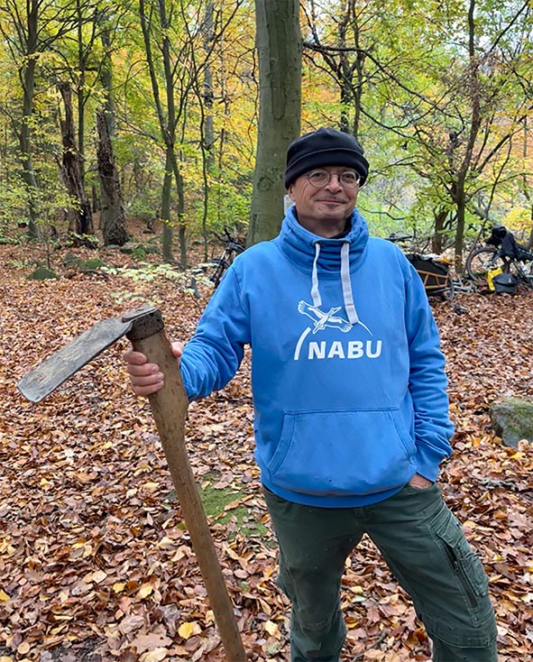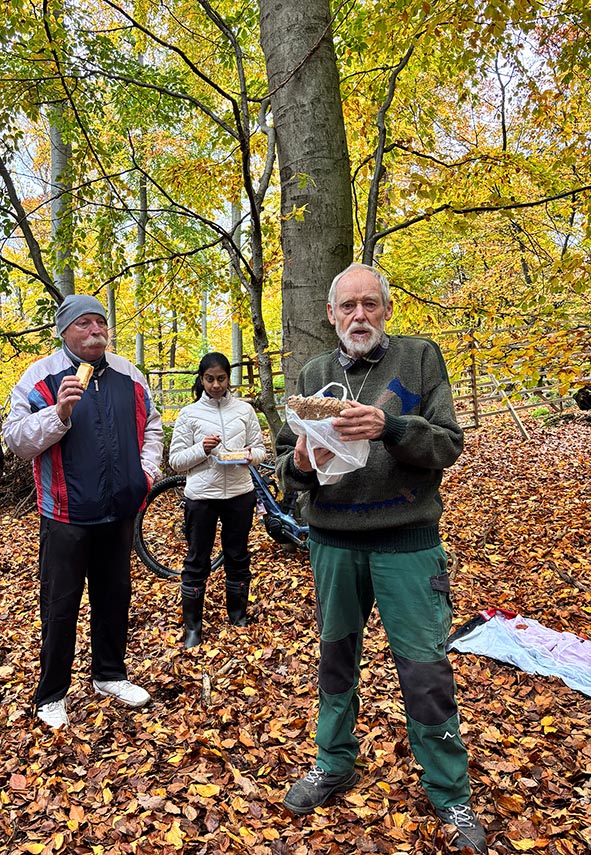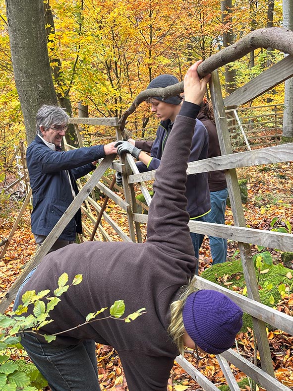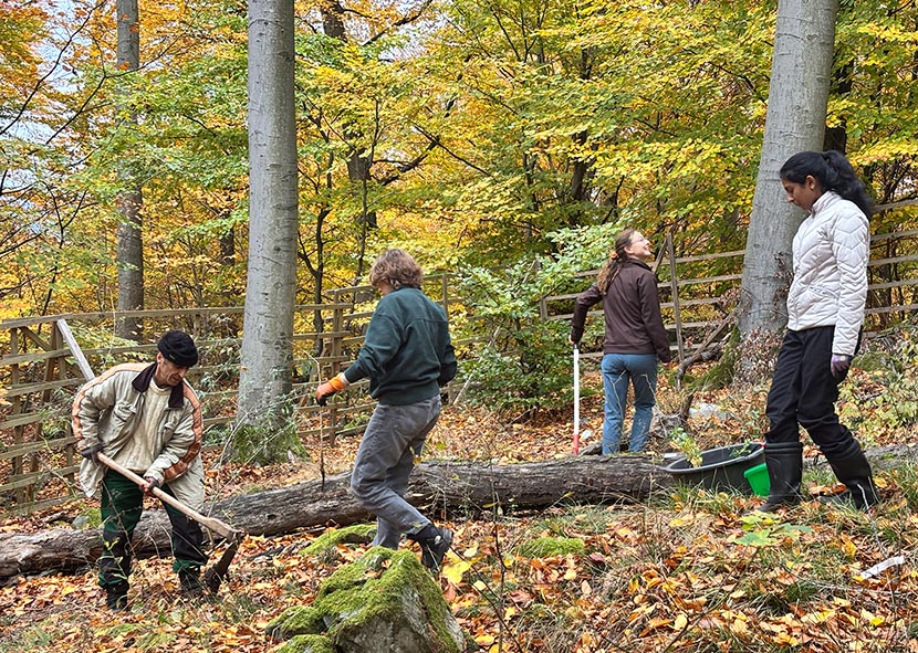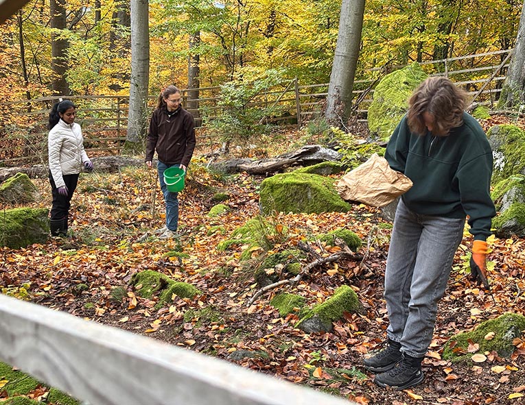 Nach einer Exkursion unter Leitung von Ecki Woite durch den Wald am Langen Berg beginnt die Arbeits-Aktion…