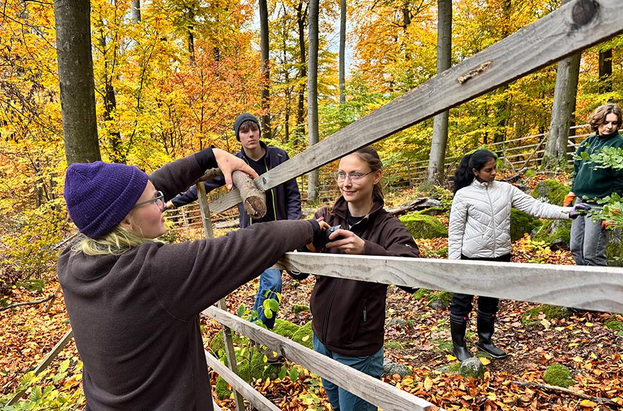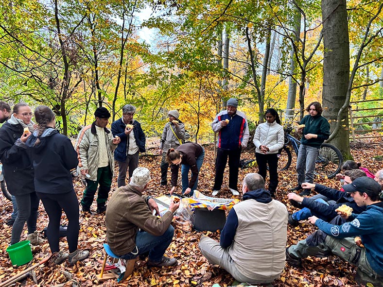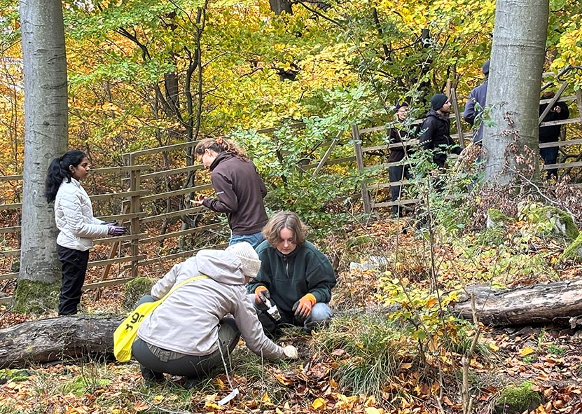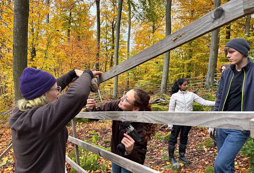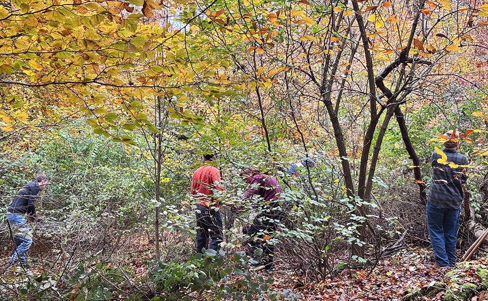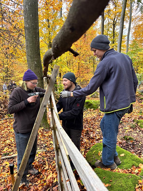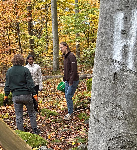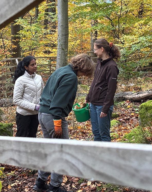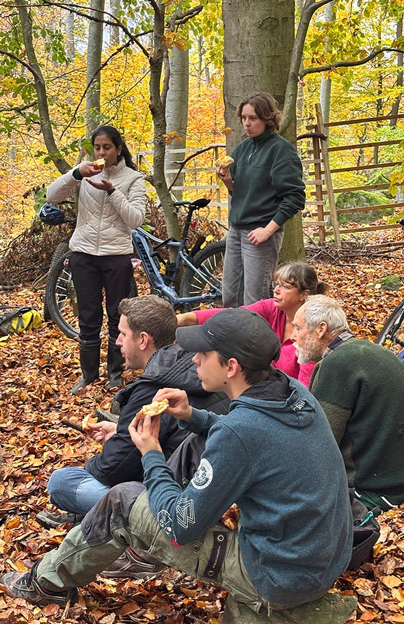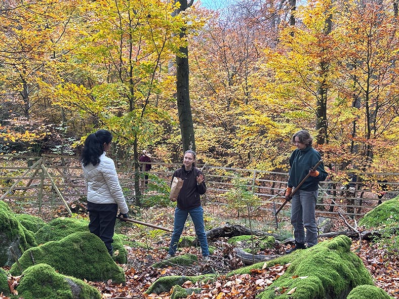 Nach einer Exkursion unter Leitung von Ecki Woite durch den Wald am Langen Berg beginnt die Arbeits-Aktion…