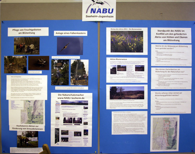 Einige hundert Gäste, darunter den Bürgermeister von Seeheim-Jugenheim, konnten sich über der Arbeit der lokalen Umwelt- und Gartenvereine in angenehmer Atmosphäre informieren. Angeregte Diskussionen gab es am NABU-Stand über die vorgestellten geplanten Projekte am Blütenhang.