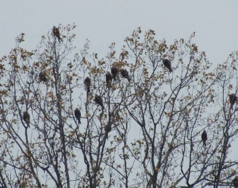 Ringeltaubenschwärme von über 500 Vögeln, aus Nord- und Osteuropa angereiste Mäusebussarde, Rabenkrähen und große Schwärme von Wacholderdrosseln, die sich im Flug von den perfekt organisierten Starenschwärmen leicht unterscheiden lassen, beherrschten überwiegend den Novemberhimmel.