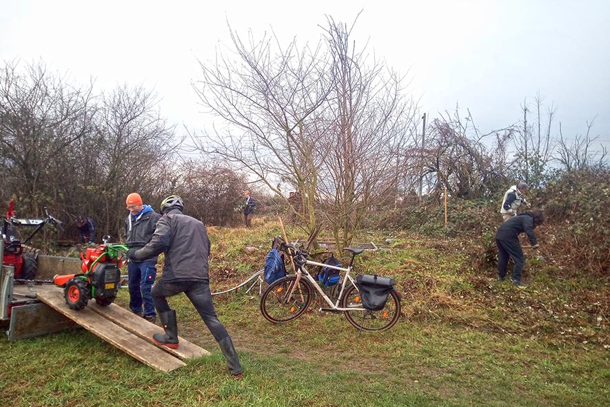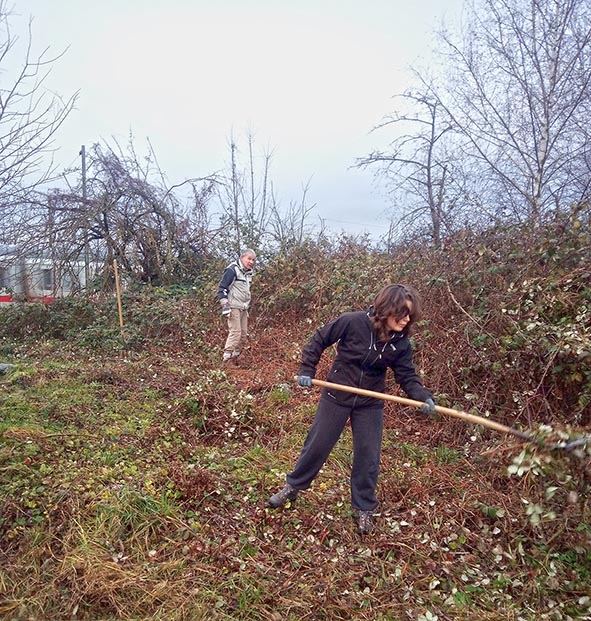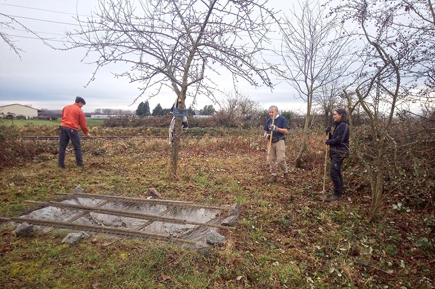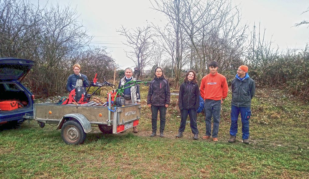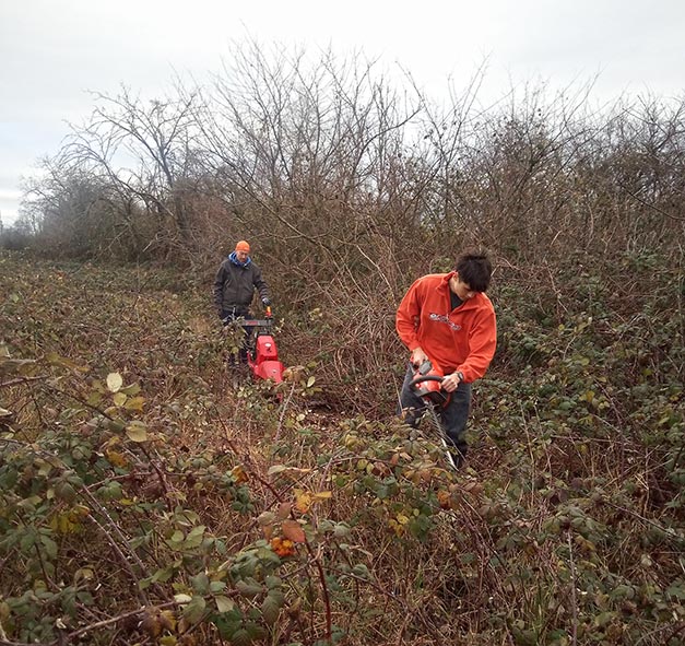 Dringend benötigte Laichgewässer, wie wasserhaltende Pfützen und Ackersenken, sind in der landwirtschaftlich intensiv genutzten Landschaft Mangelware. Deshalb hat die Amphibiengruppe des NABU an verschiedenen Stellen Ersatzlaich-Gewässer geschaffen. Da die Kreuzkröte offene sandige Lebensbereiche bevorzugt, müssen die Laichgewässer weitgehend von Bewuchs freigehalten werden. Mit Balkenmäher, Motorheckenschere und Freischneider wurden die Flächen freigelegt und die Laichgewässer für die nächste Saison vorbereitet.