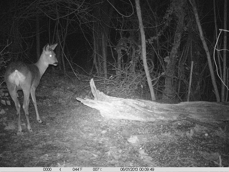 Rehwild, Rotfuchs, Marder und Hauskatze stellen sich regelmässig ein.