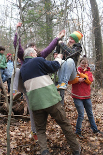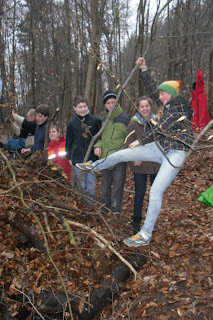 9 Hermeline starteten mit Essenszutaten um 17 Uhr, schöpften Trinkwasser im Dornbachteich, sammelten Esskastanien und bauten je eine Kröte rings uns Lagerfeuer.