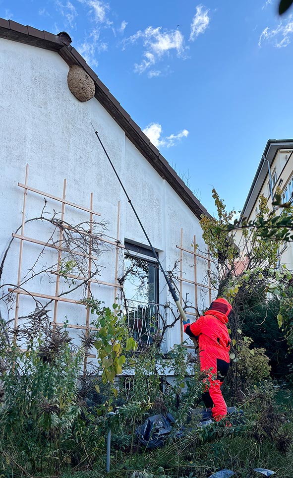 Wir begleiten Nicole König, Wespen- und Hornissenberaterin, bei einem Bekämpfungseinsatz in Malchen.