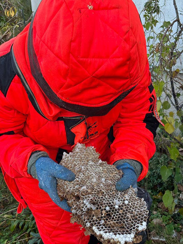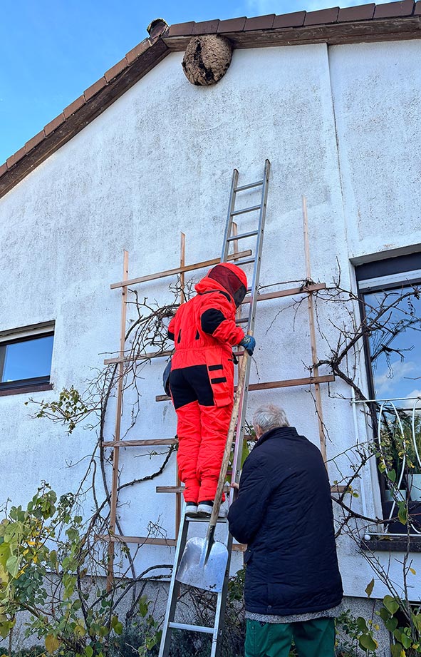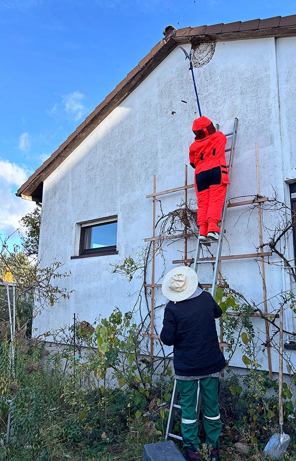 Wir begleiten Nicole König, Wespen- und Hornissenberaterin, bei einem Bekämpfungseinsatz in Malchen.