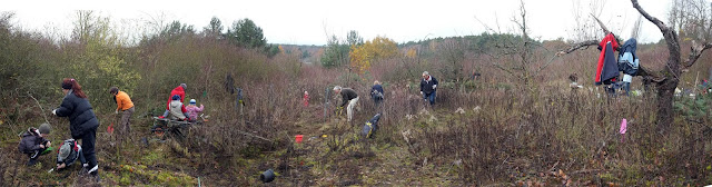 Wir bauen eine Benjeshecke, fällen Kiefern, schneiden Hartriegel, pflanzen neue Obststräucher im neuen Naturgarten am Blütenhang bei Malchen.