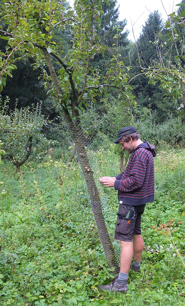 ![]() und Zdenka wickelt ihn um die Apfelbäume. |