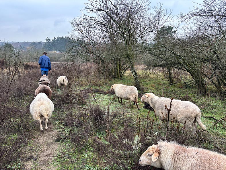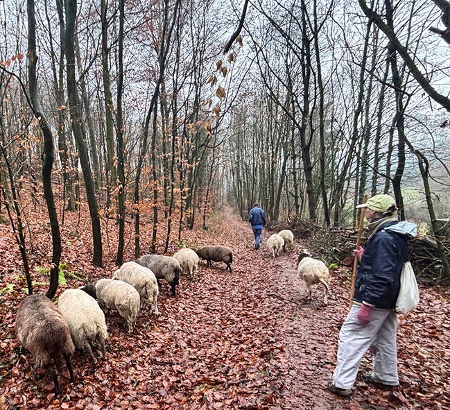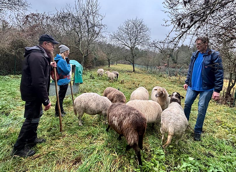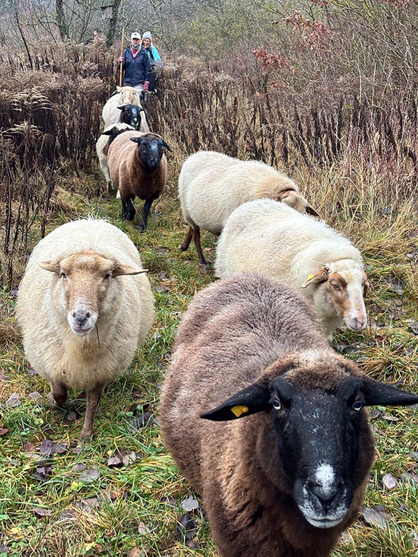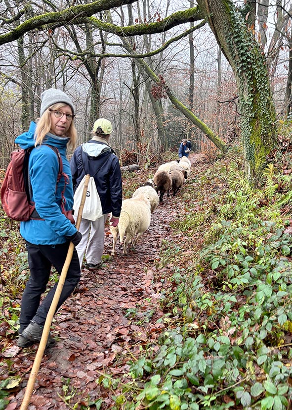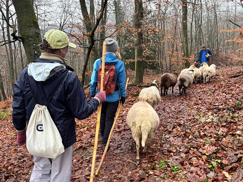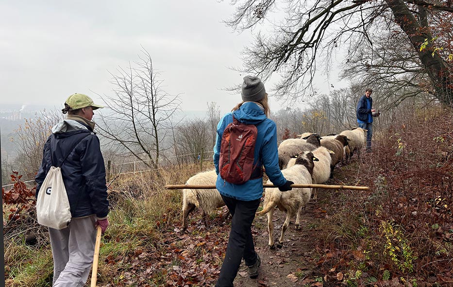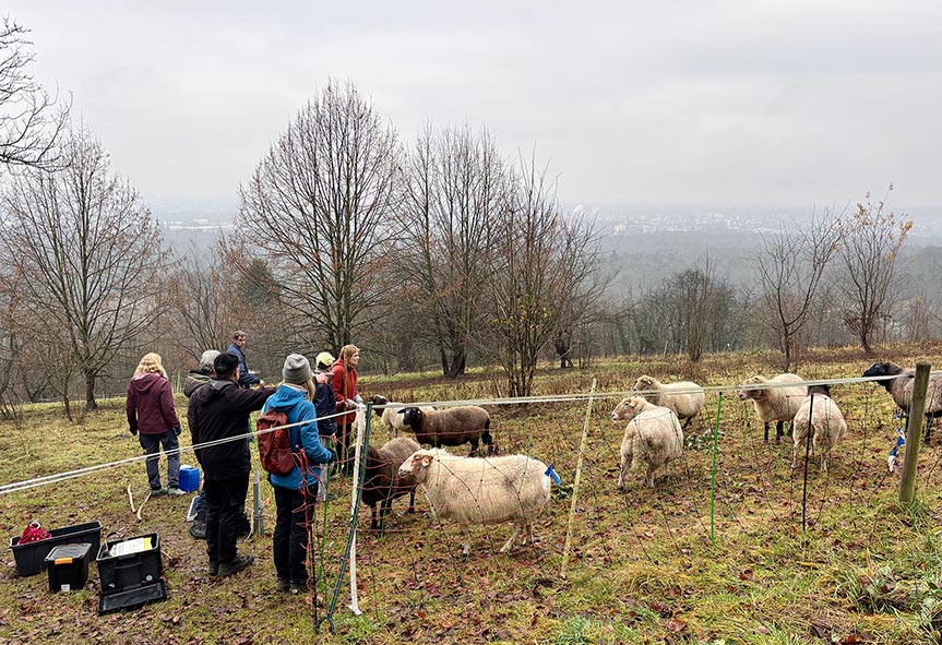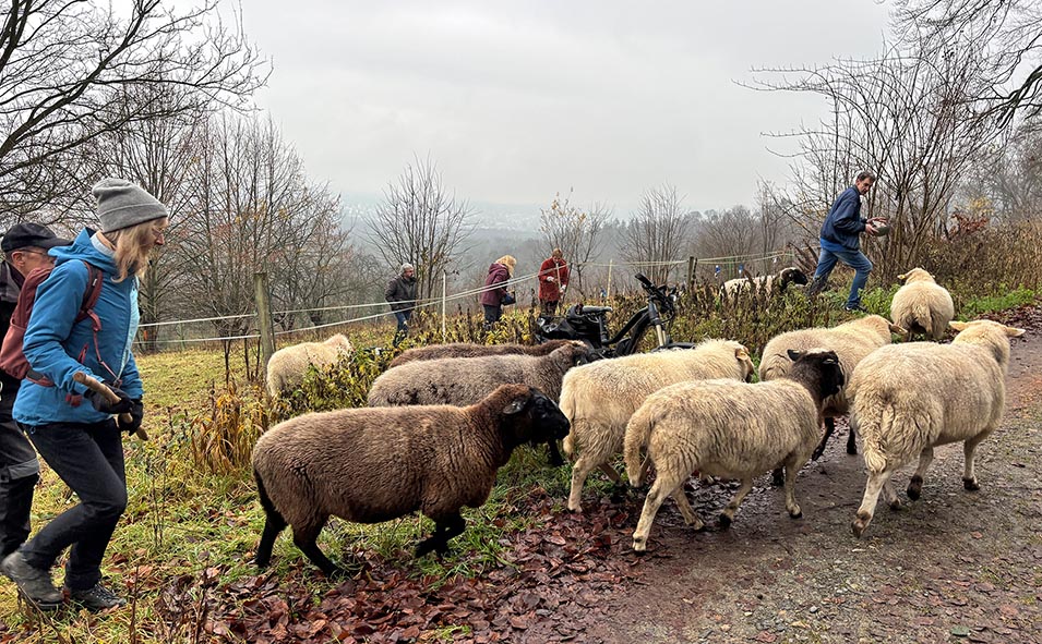 Start der Schafwanderung auf der Eichhörnchenweide am oberen Blütenhang