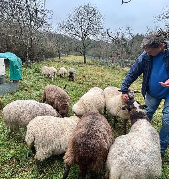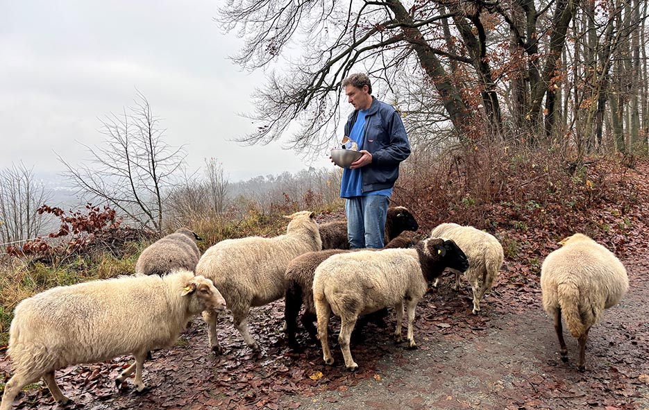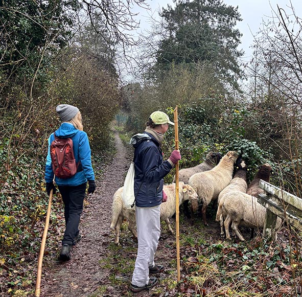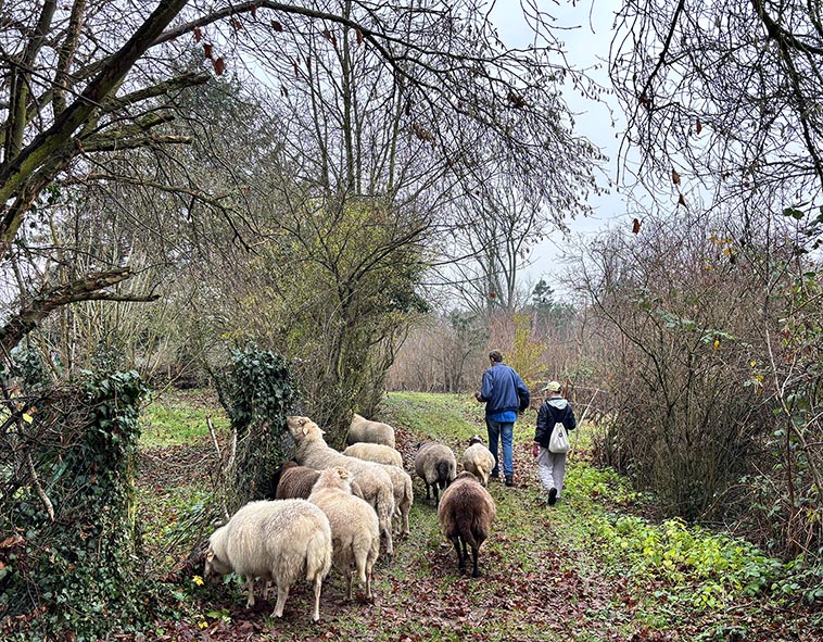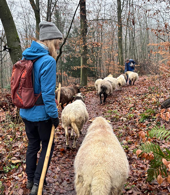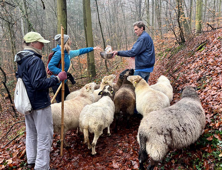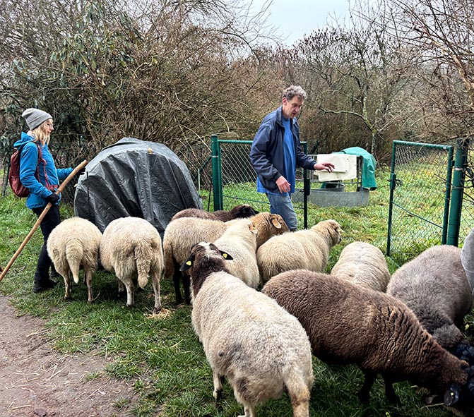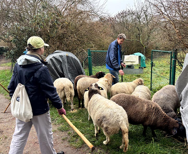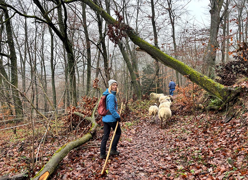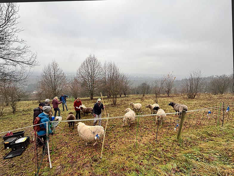 Start der Schafwanderung auf der Eichhörnchenweide am oberen Blütenhang