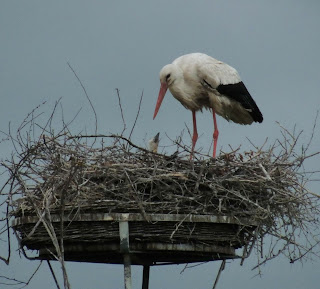 Genau eine Woche nach dem Schlüpfen lassen sich die Storchenküken in der Landbachaue bei ihrer Fütterung bereits für kurze Augenblicke beobachten. Wie viele es sind steht noch nicht fest. Es sind aber zumindest zwei, die sich gleichzeitig zeigen.