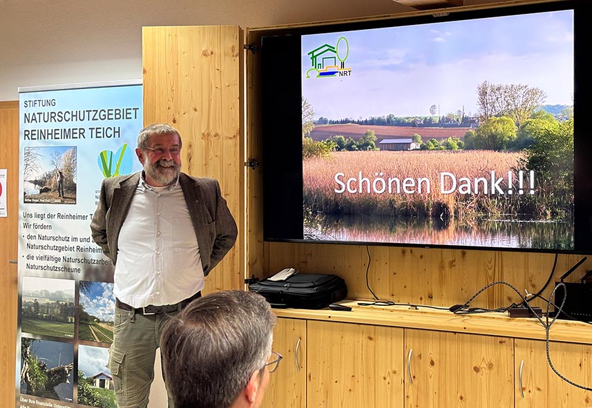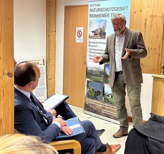Fritz Fornoff nutzte die Gelegenheit, die Arbeit des Teams der Naturschutzscheune darzustellen, dankte den vielen Unterstützern, und warb für eine zukunftssichere Aufstellung der Stiftung der Naturschutzscheune.