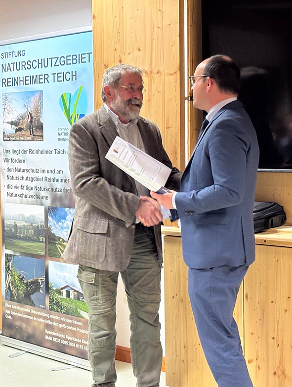 Der Umweltschutzpreis 2025 des Landkreises Darmstadt-Dieburg wurde durch den Ersten Beigeordneten des Landkreises, Lutz Köhler, an Fritz Fornoff verliehen. Die Laudatio hielt anschließend in der Naturschutzscheune Reinheimer Teich der Bürgermeister von Reinheim, Manuel Feick.