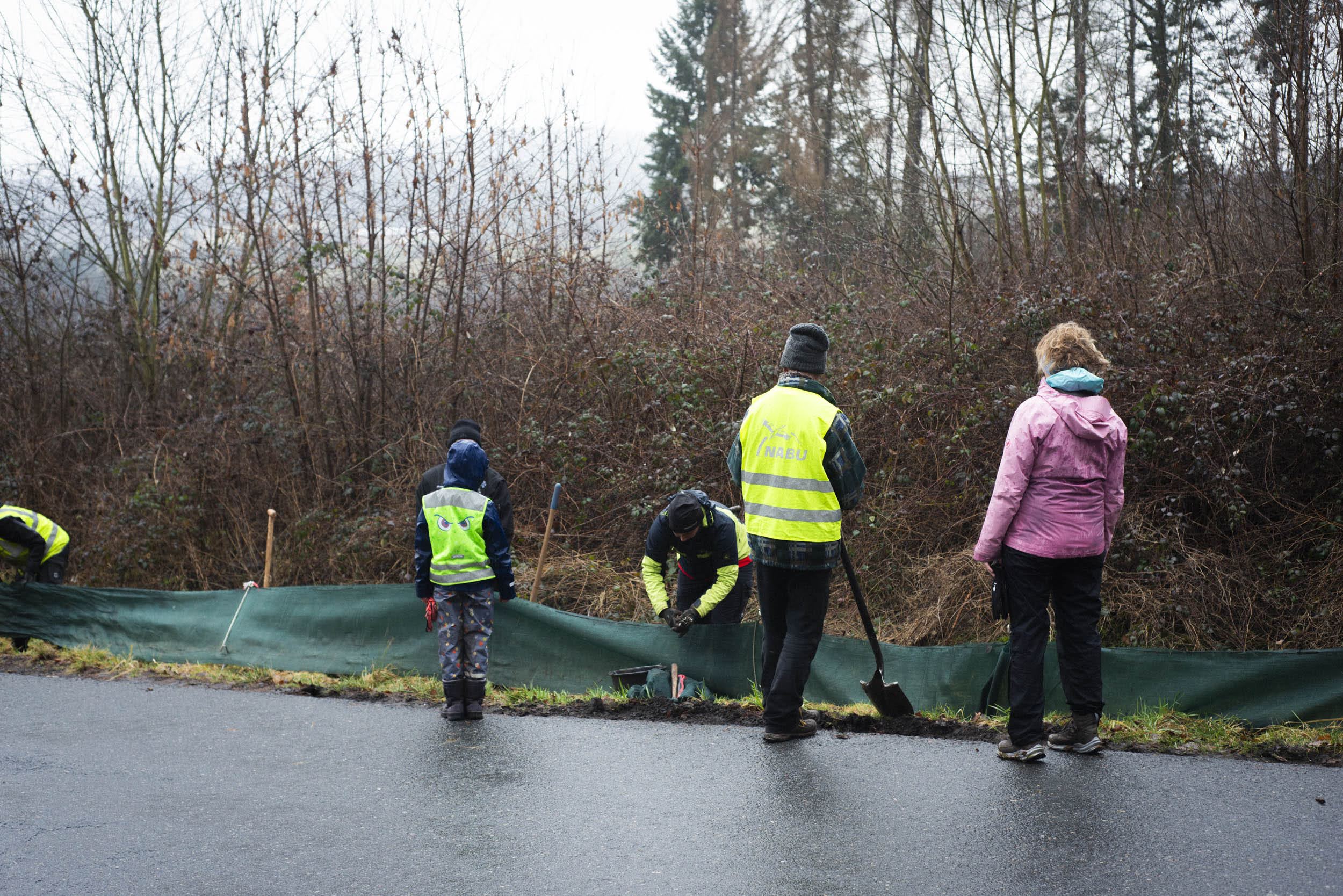 Die Amphibienschützer werden in den nächsten Wochen die Tiere einsammeln und über die Straße bringen. So konnten im letzten Jahr rund 1000 Erdkröten sicher die andere Seite erreichen.